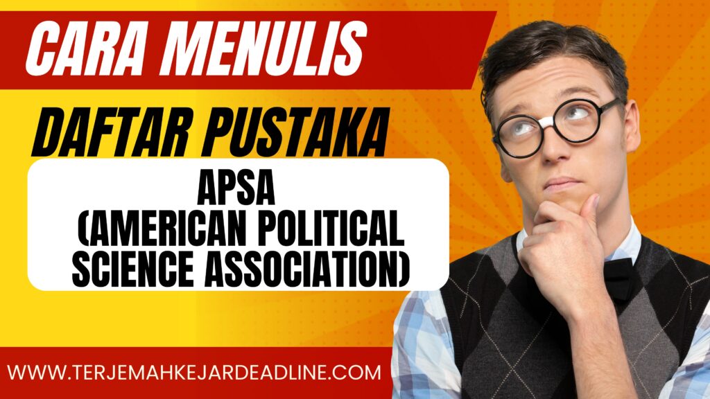 American Political Science Association (APSA) adalah organisasi profesional yang berfokus pada pengembangan penelitian dan pendidikan di bidang ilmu politik. APSA menyediakan pedoman penulisan untuk peneliti dan akademisi agar dapat menyusun karya ilmiah yang terstruktur, konsisten, dan mudah dipahami. Salah satu komponen penting dari penulisan akademik adalah penggunaan sitasi yang benar. Dengan melakukan sitasi yang tepat, penulis dapat menghindari plagiarisme dan memberikan penghargaan kepada penulis asli.